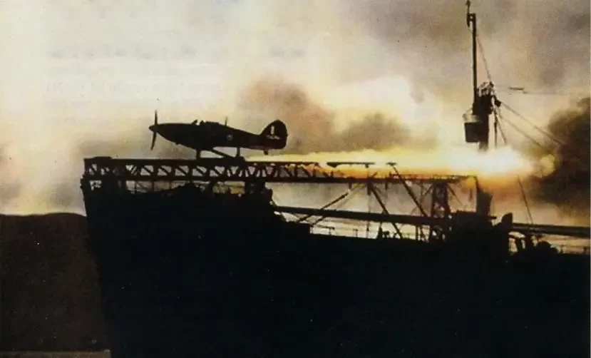 В целом, конечно, идея была… идеей. Когда 3 августа 1941 года экипаж «Кондора» в Атлантических просторах нашел конвой SL-81, шедший из Сьерра-Леоне в Британию, он никак не мог предполагать, что ему навстречу вылетит «Харрикат». А он вылетел, запущенный с корабля «Маplin», под управлением лейтенанта Роберта Эверетта. И сбил «Кондора», экипаж которого просто не был готов к такому развитию событий. Это был первый случай, когда «Харрикат» сбил немецкий самолет над морем.