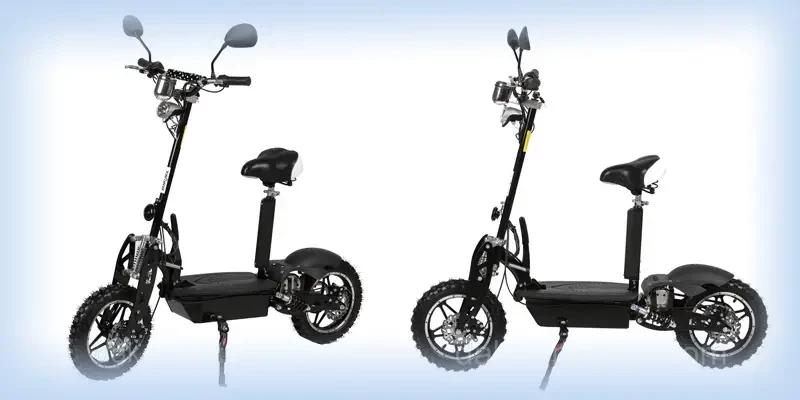 Электросамокат UM-1000LB, оснащённый мощным двигателем 1000 Вт и двумя свинцово-кислотными АКБ 12Ач/36В