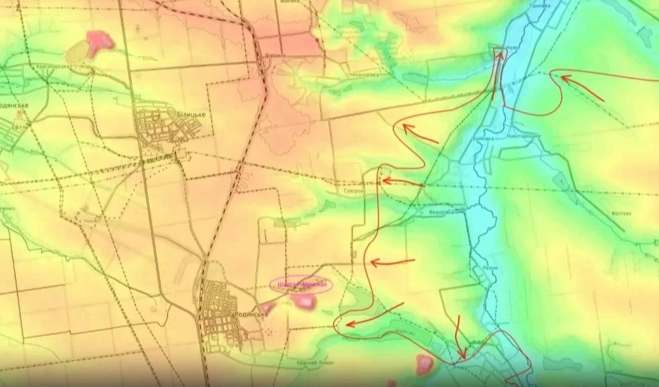 "Вернее, пока к Родинскому они не вышли, но они вышли к шахте Родинская, до неё им осталось всего лишь один километр, а также уже вышли на окраину населенного пункта Красный Лиман. Чем интересен Красный Лиман? Он очень длинное такое село, тянется на несколько километров по балке и, что самое важное, жилая застройка Красного Лимана плавно переходит в жилую застройку Родинского. Таким образом, если мы зацепимся за жилую застройку Красного Лимана, мы по ней, думаю, довольно быстро пойдем на Родинское и попытаемся зайти в этот городок", - уточнил военный эксперт.
